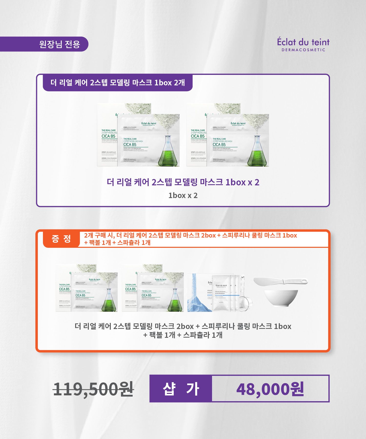 [스텝2. 시카 파우더] 글루코오스, 타피오카전분, 칼슘설페이트, 말토덱스트린, 정제수, 소듐벤조에이트, 부틸렌글라이콜, 병풀추출물, 1,2-헥산다이올, 티트리추출물, 트레할로오스, 베타인, 스피룰리나플라텐시스가루, 황금가루, 알로에베라잎즙가루, 소듐하이알루로네이트, 알란토인, 포타슘알지네이트
