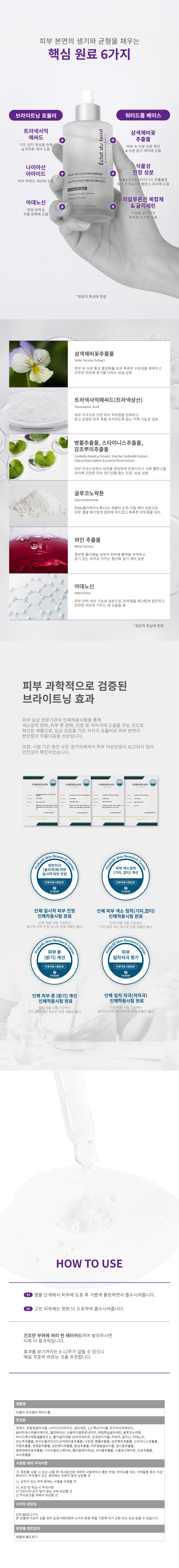 정제수, 부틸렌글라이콜, 나이아신아마이드, 글리세린, 1,2-헥산다이올, 트라넥사믹애씨드, 솔비탄세스퀴올리에이트, 클로페네신, 소듐하이알루로네이트, 에틸헥실글리세린, 글루코노락톤, 하이드록시에틸셀룰로오스, 폴리글리세릴-10라우레이트, 프로판다이올, 카보머, 알지닌, 아데노신, 포도주추출물, 하이드롤라이즈드삼색제비꽃추출물, 낫토검, 병풀추출물, 감초뿌리추출물, 스타아니스추출물, 자몽추출물, 연꽃꽃추출물, 모란뿌리추출물, 황금추출물, 카프릴릴글라이콜, 접시꽃추출물, 알로에베라잎추출물, 다이소듐포스페이트, 폴리솔베이트60, 쇠비름추출물, 소듐포스페이트, 인삼추출물, 녹차추출물