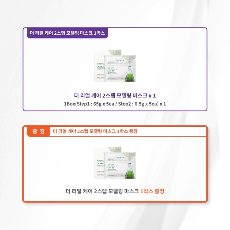 [스텝2. 시카 파우더] 글루코오스, 타피오카전분, 칼슘설페이트, 말토덱스트린, 정제수, 소듐벤조에이트, 부틸렌글라이콜, 병풀추출물, 1,2-헥산다이올, 티트리추출물, 트레할로오스, 베타인, 스피룰리나플라텐시스가루, 황금가루, 알로에베라잎즙가루, 소듐하이알루로네이트, 알란토인, 포타슘알지네이트
