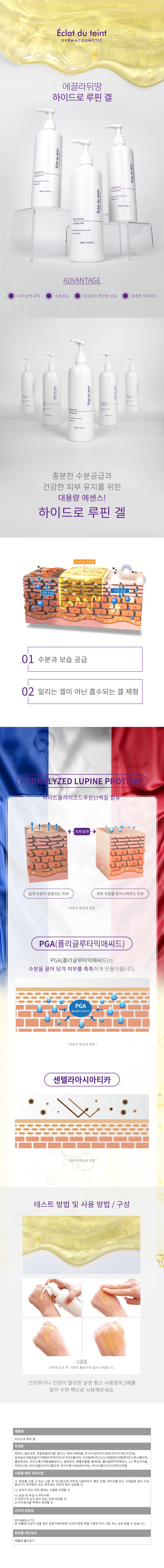 정제수, 글리세린, 부틸렌글라이콜, 알지닌, 페녹시에탄올, 피이지-60하이드로제네이티드캐스터오일, 암모늄아크릴로일다이메틸타우레이트/브이피코폴리머, 아크릴레이트/C10-30알킬아크릴레이트크로스폴리머, 클로페네신, 하이드록시셀룰로오스, 알란토인, 병풀추출물, 황색4호, 폴리글루타믹애씨드, 1,2-헥산다이올, 적색227호, 하이드롤라이즈드콜라겐, 하이드록시데실유비퀴논, 하이드롤라이즈드루핀단백질