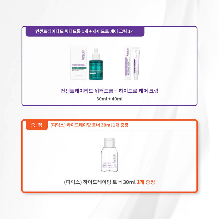 정제수, 부틸렌글라이콜, 프로필렌글라이콜, 솔비탄세스퀴올리에이트, 클로페네신, 글루코노락톤, 에틸헥실글리세린, 글리세린, 1,2-헥산다이올, 프로판다이올, 폴리글리세릴-10라우레이트, 띠뿌리추출물, 소듐하이알루로네이트, 피이지-8, 감초뿌리추출물, 병풀잎추출물, 효모추출물, 초피나무열매껍질추출물, 할미꽃추출물, 호장근뿌리추출물, 페녹시에탄올, 연꽃추출물, 자몽추출물, 카보머, 개똥쑥추출물, 접시꽃추출물, 알로에베라잎추출물, 카프릴릴글라이콜, 소듐시트레이트, 포타슘솔베이트, 시트릭애씨드, 바이오틴