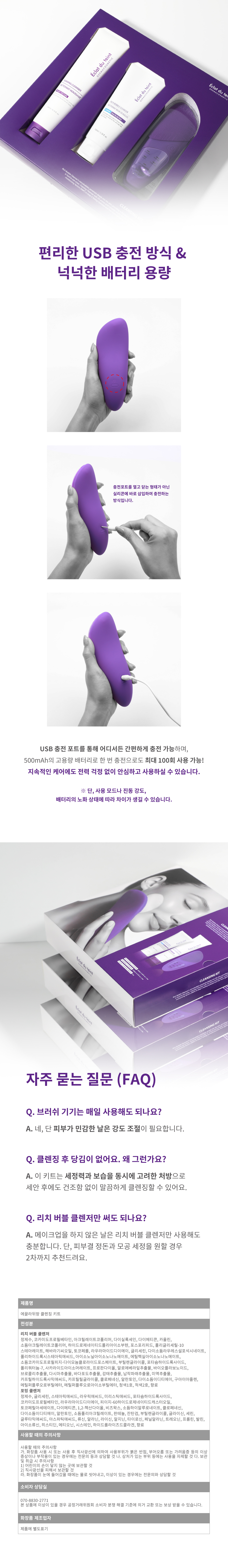 [리치버블클렌저] : 정제수, 코카미도프로필베타인, 아크릴레이트코폴리머, 다이실록세인, 다이메티콘, 카올린, 소듐아크릴레이트코폴리머, 하이드로제네이티드폴리아이소부텐, 포스포리피드, 폴리글리세릴-10스테아레이트, 해바라기씨오일, 토코페롤, 라우라마이드디이에이, 글리세린, 다이소듐라우레스설포석시네이트, 폴리하이드록시스테아릭애씨드, 아이소노닐아이소노나노에이트, 에틸헥실아이소노나노에이트, 소듐코카미도프로필피지-다이모늄클로라이드포스페이트, 부틸렌글라이콜, 포타슘하이드록사이드, 폴리쿼터늄-7, 사카라이드아이소머레이트, 프로판다이올, 알로에베라잎추출물, 바이오플라보노이드, 브로콜리추출물, 다시마추출물, 바다포도추출물, 감태추출물, 납작파래추출물, 미역추출물, 카프릴하이드록사믹애씨드, 카프릴릴글라이콜, 클로페네신, 알란토인, 다이소듐이디티에이, 구아이아줄렌, 메틸퍼플루오로부틸에터, 메틸퍼플루오로아이소부틸에터, 청색1호, 적색2호, 향료