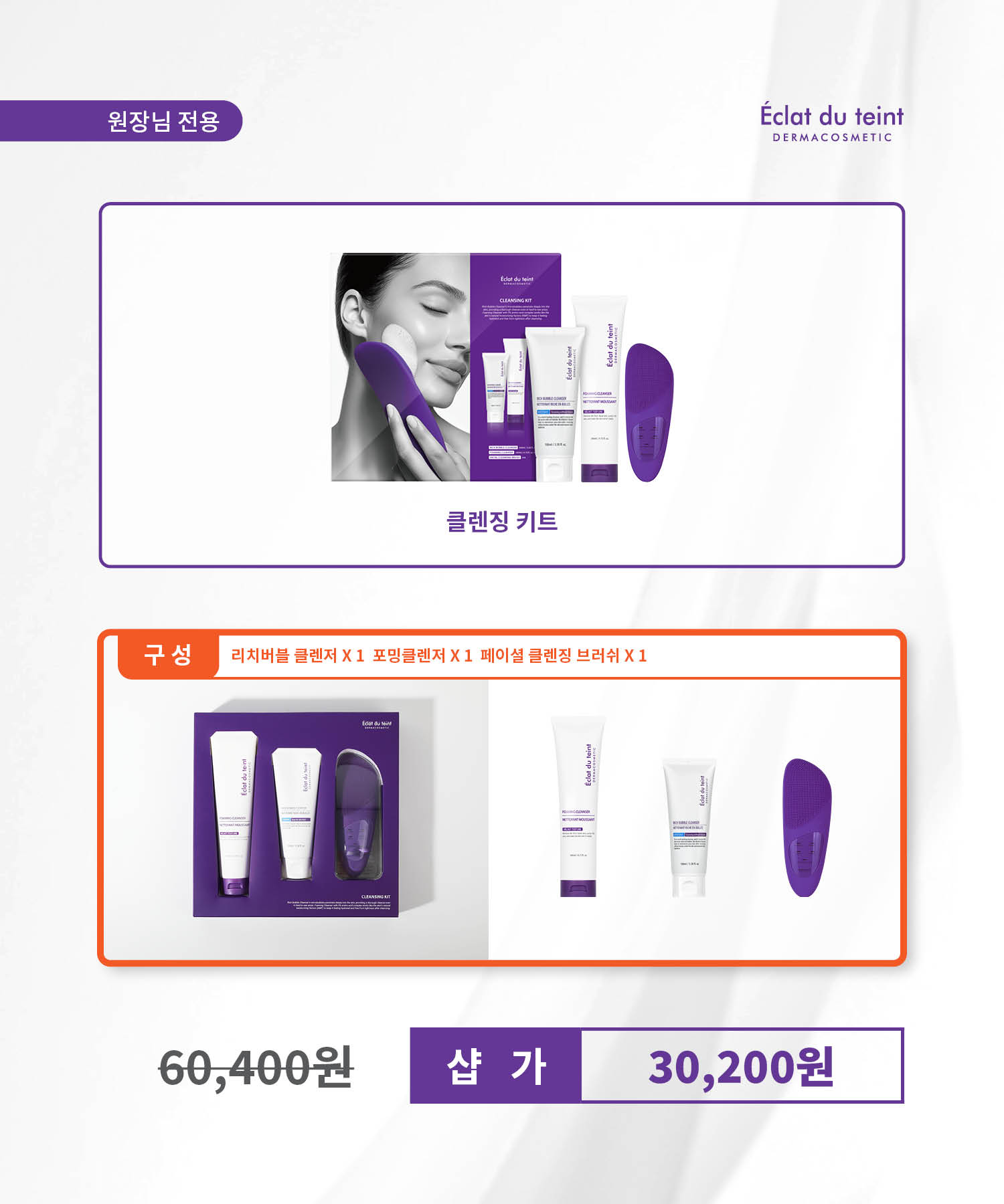 [포밍클렌저] : 정제수, 글리세린, 스테아릭애씨드, 라우릭애씨드, 미리스틱애씨드, 포타슘하이드록사이드, 코카미도프로필베타인, 라우라마이드디이에이, 피이지-60하이드로제네이티드캐스터오일, 토코페릴아세테이트, 다이메티콘, 1,2-헥산다이올, 비즈왁스, 소듐하이알루로네이트, 클로페네신, 다이소듐이디티에이, 알란토인, 소듐폴리아크릴레이트, 판테놀, 잔탄검, 부틸렌글라이콜, 글라이신, 세린, 글루타믹애씨드, 아스파틱애씨드, 류신, 알라닌, 라이신, 알지닌, 타이로신, 페닐알라닌, 트레오닌, 프롤린, 발린, 아이소류신, 히스티딘, 메티오닌, 시스테인, 하이드롤라이즈드콜라겐, 향료