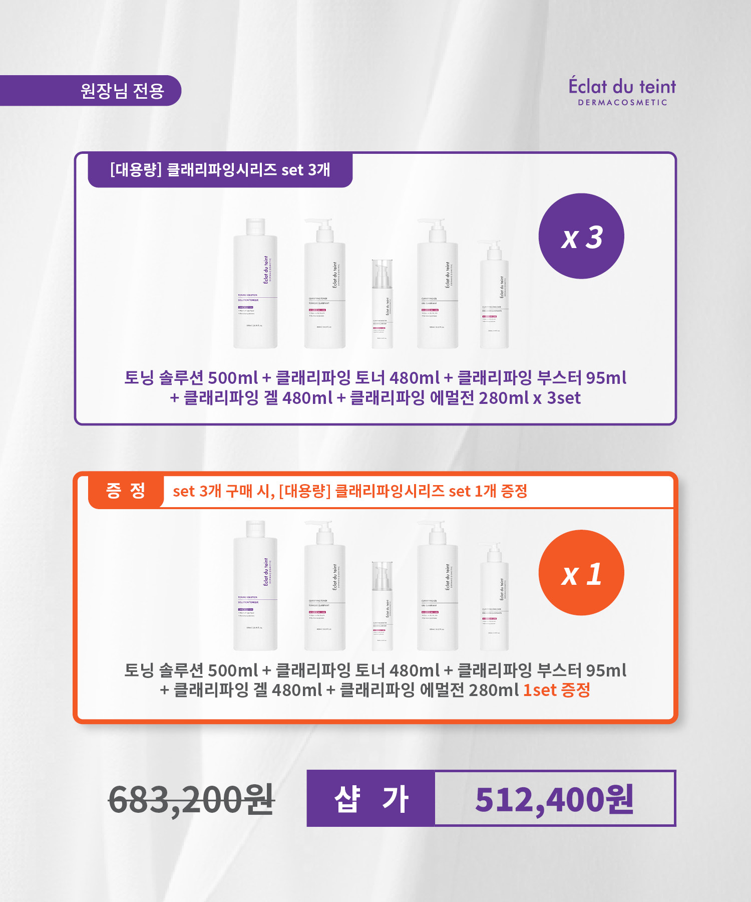 토닝솔루션500ml+클래리파잉토너480ml+클래리파잉부스터95ml+클래리파잉겔480ml+클래리파잉에멀전280ml