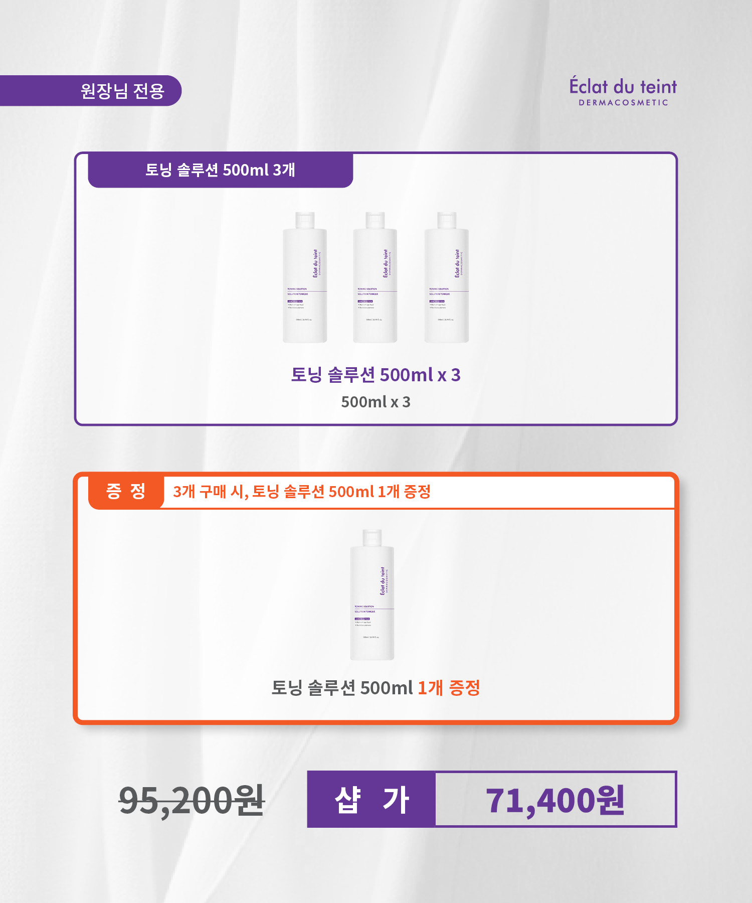 정제수, 부틸렌글라이콜, 소듐시트레이트, 편백수, 글리세린, 알지닌, 클로페네신, 소듐라우로일글루타메이트, 에틸헥실글리세린, 잔탄검, 카보머, 하이드로제네이티드폴리아이소부텐, 1,2-헥산다이올, 알란토인, 피이지-60하이드로제네이티드캐스터오일, 티트리잎오일, 에탄올, 소듐하이알루로네이트, 모란뿌리추출물, 스타아니스추출물, 악마의발톱뿌리추출물, 약모밀추출물, 연꽃꽃추출물, 자몽추출물, 카바카바뿌리추출물, 황금추출물, 갈대추출물, 퉁퉁마디추출물, 레몬추출물, 빌베리열매추출물, 사탕수수추출물, 설탕단풍추출물, 오렌지추출물, 마트리카리아꽃추출물, 병풀잎추출물, 쇠비름추출물, 인삼추출물, 티트리추출물, 지모뿌리추출물, 토코페롤