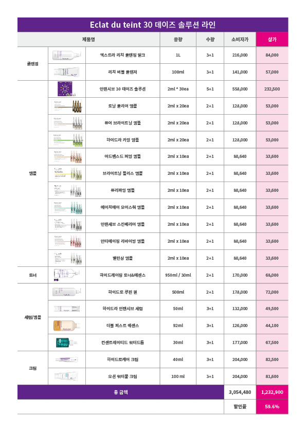 📍한번 클릭으로 에끌라뒤땅 30 데이즈 솔루션 라인 set 구매